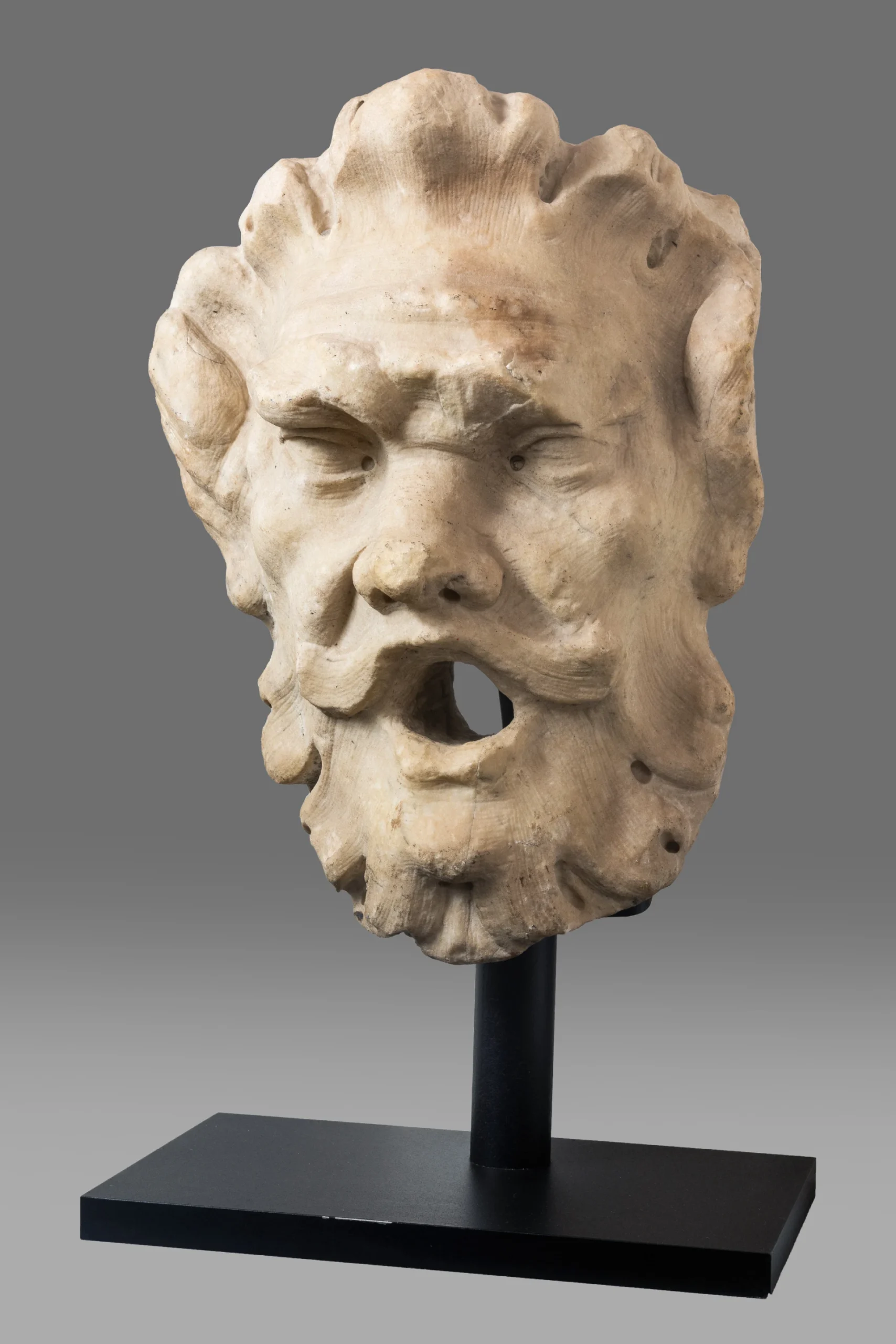 Mascherone di fontana in marmo bianco, Genova fine XVI secolo